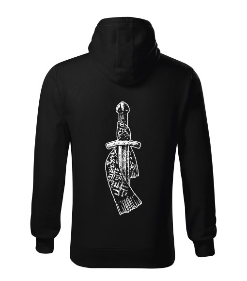 Jaka ar rāvējslēdzēja aizdari, dubulta auduma kapuci un divām kabatām priekšā.