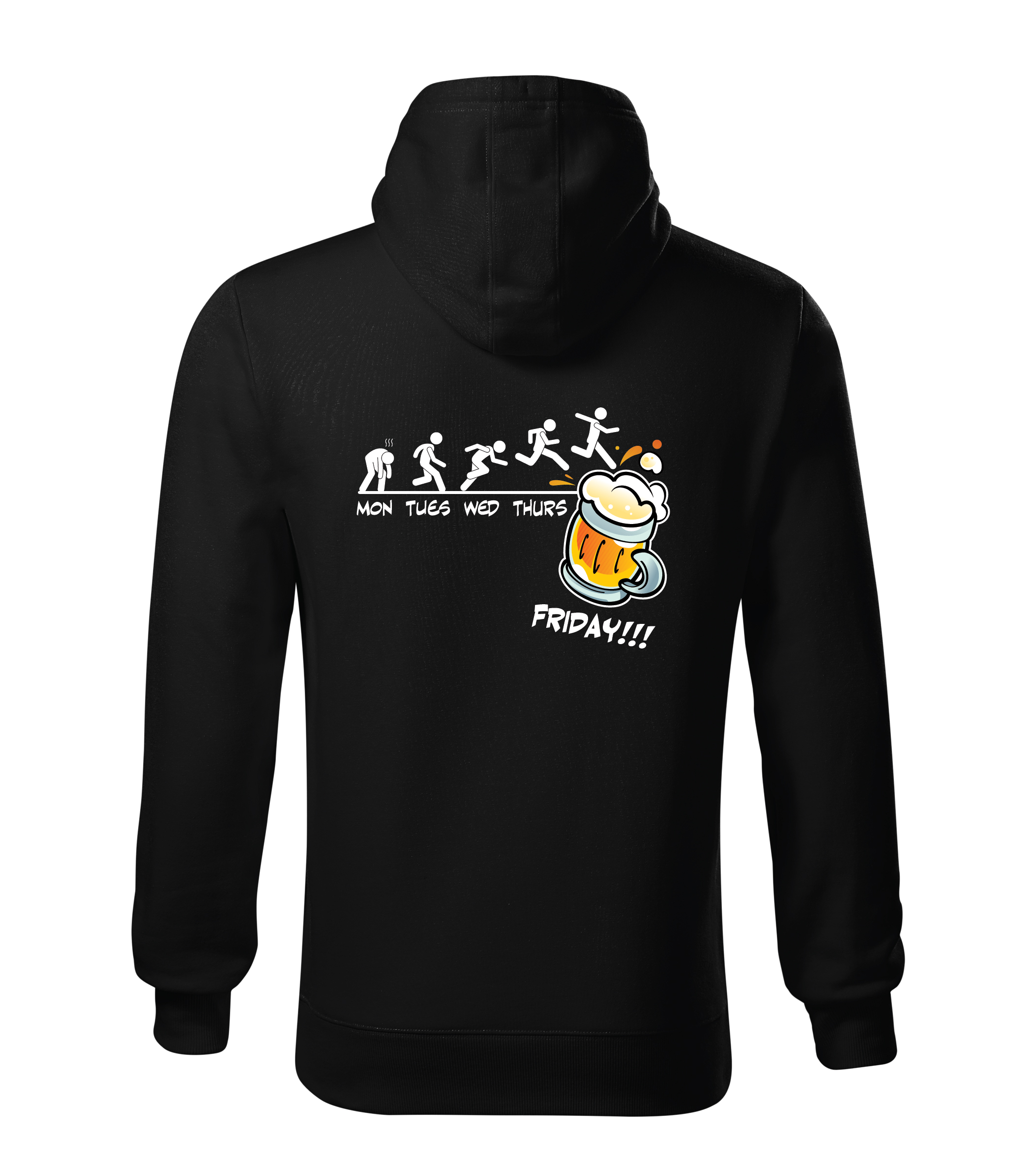 Jaka ar rāvējslēdzēja aizdari, dubulta auduma kapuci un divām kabatām priekšā.